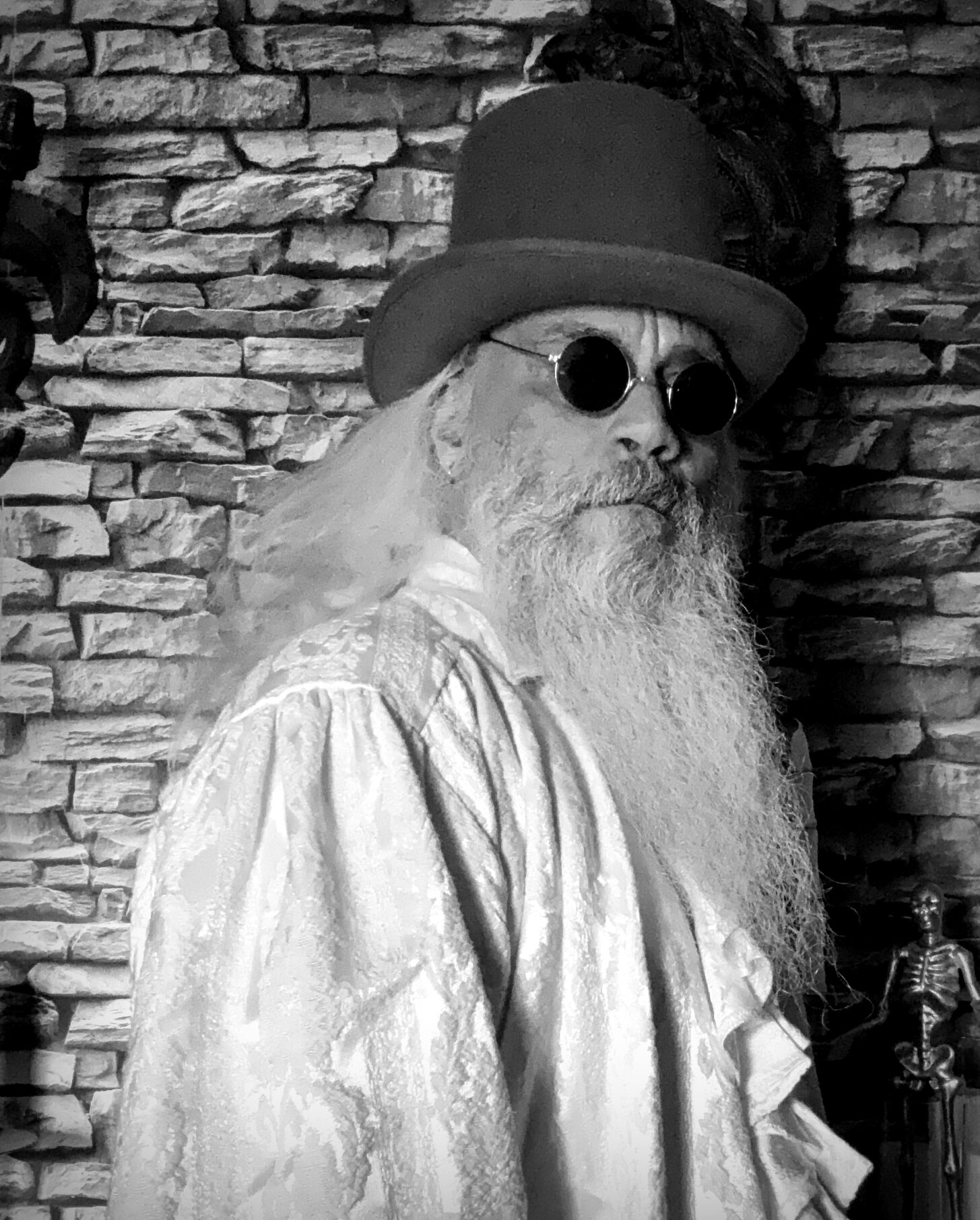 Throughout the turbulent 20th century, GIO adapted without ever quite belonging. He moved through cities during both World Wars under assumed names, assisting displaced scholars, surviving disaster with uncanny composure. He immersed himself in early jazz, cabaret culture, Bauhaus design, and underground literary salons. He studied depth psychology, symbolist poetry, hermetic traditions, and the enduring threads of secret knowledge. His appearance evolved subtly, hair streaked silver and black, beard practical yet long, eyes sharper with decades of quiet observation. Dark suits, long coats, scarves. Old-world scholar meeting modern intellectual.